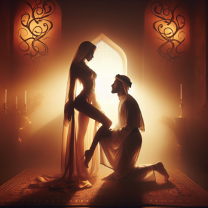 The moon hung low, casting silver beams through the open windows, painting their bodies in ethereal light. Thorne’s eyes gleamed with hunger as he approached Elara, who lay on the velvet-draped bed, her heart pounding in anticipation. ‘Tonight, my love,’ he murmured, his voice a velvet growl, ‘you’ll surrender to the bindings of our passion.’ She nodded, her breath quickening, as he drew out silken cords, soft yet unyielding, tying her wrists gently to the bedposts. The fetish stirred within her—the delicious restraint heightening every sensation.